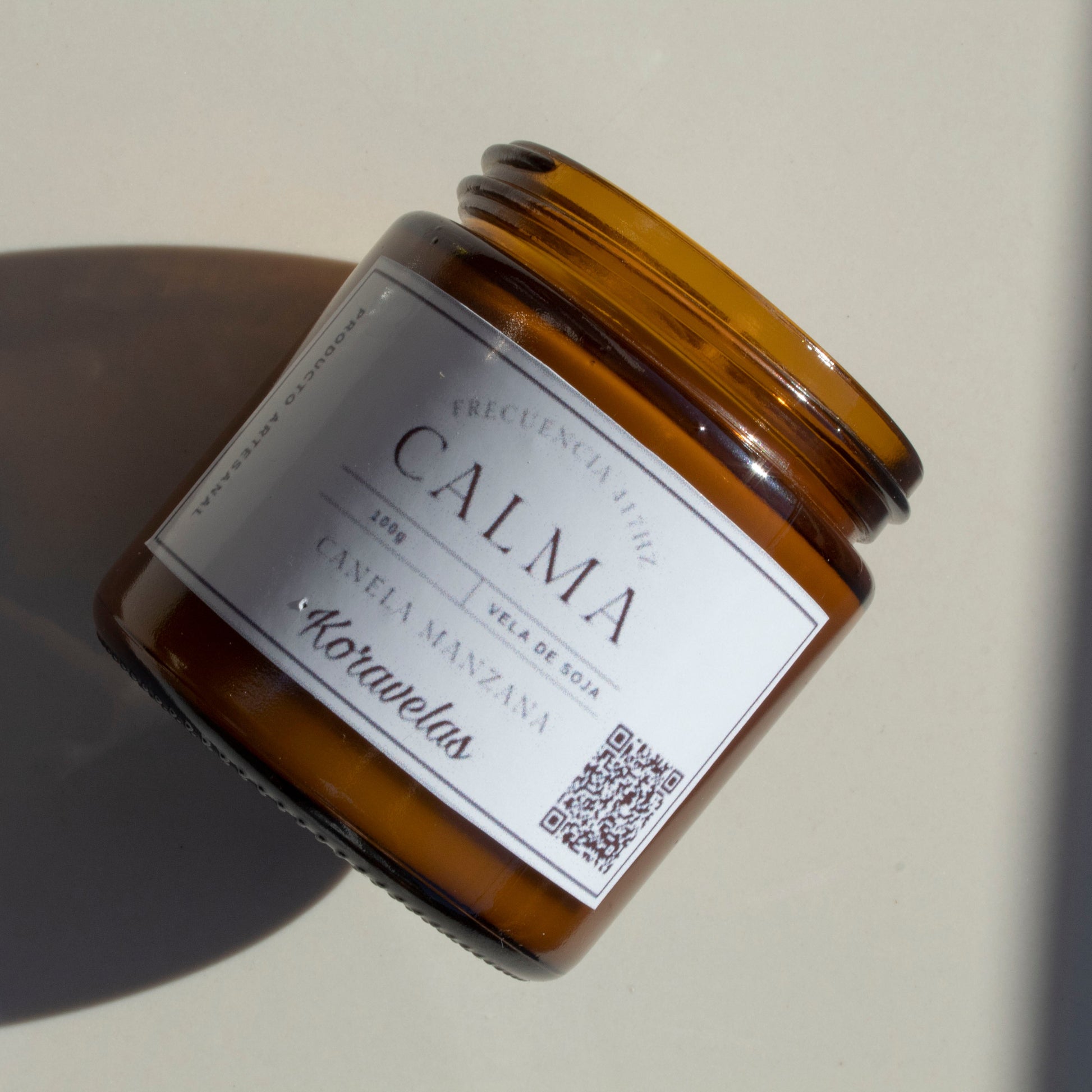 Esta vela incluye un código QR exclusivo 🔗 que enlaza a frecuencias de calma, integrando una experiencia sensorial que acompaña el fuego, el aroma y el momento presente.